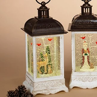 Decorative Lantern Snow Globe – Deer with Cardinals